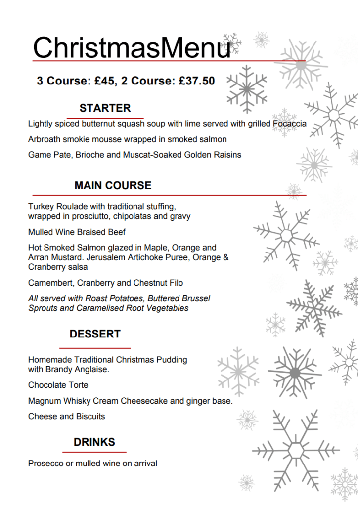 Over the festive period we will be running a reduced menu alongside our Christmas menu.